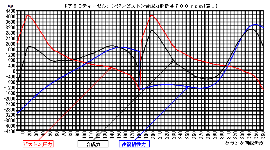 「ボア60ディーゼルエンジンピストン合成力解析4700rpm」の結果を表1に示す。